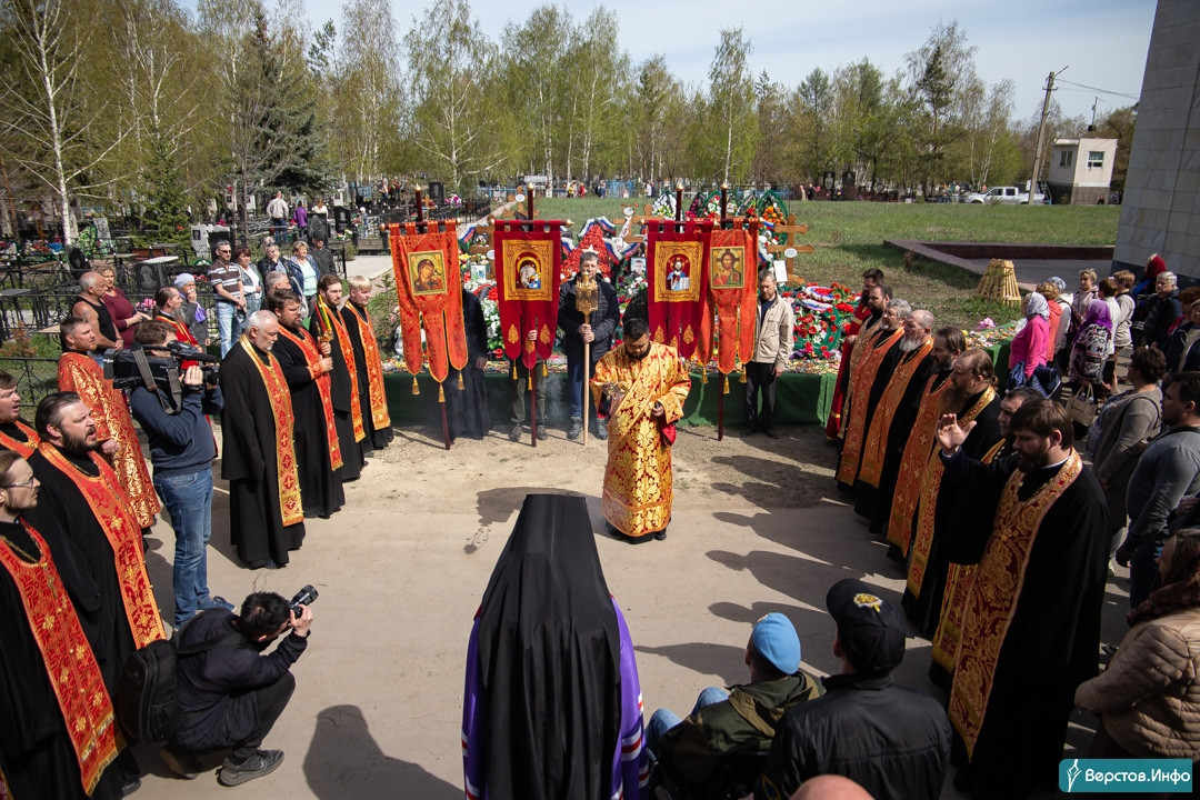 Священники и верующие собрались у главных ворот Левобережного кладбища около двух часов дня. Мимо них проходил людской неиссякаемый поток, горожане шли на могилы близких убраться, посидеть, помянуть…