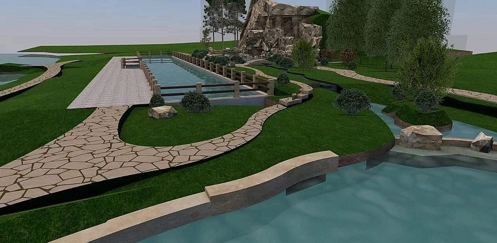 Представитель компании застройщика Рустам Шагалин рассказывает, что на территории сделали специальную запруду, отвели воды ручья, которые скапливались в низине в одно место, и сделали пруд. В водоеме планируют разводить рыбу, для этого запустили туда малька. К пруду оставили доступ для скотины, он не соприкасается с парком, в условиях деревни важно, чтобы у животных был водопой, говорит подрядчик. Подробный паспорт будущего объекта можно увидеть на стенде рядом со стройкой и в офисе компании.