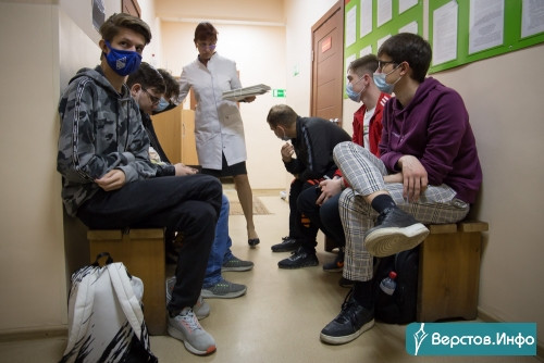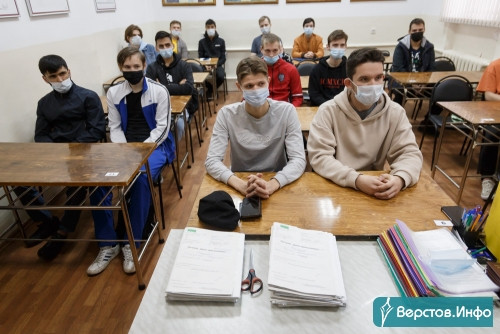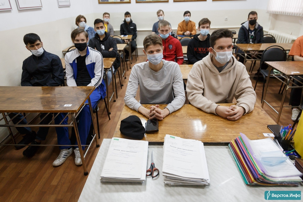 Первым делом Григорий Борисович повел журналистов в кабинет, где должны были провести инструктаж для призывников, которые уже 27 мая отправятся отдавать долг Родине. Косенок попросил молодежь, сидевшую за партами, надеть защитные маски, а вот головные уборы, наоборот, снять.