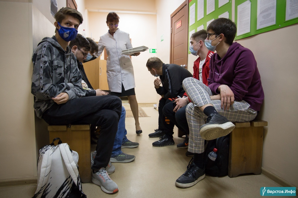 Призывники, которые отправятся служить в другие дни, тихо сидели в коридоре и ожидали вызова в кабинет, на котором висела табличка «Призывной пункт. Не входить. Ожидать вызова». Там располагается призывная комиссия, которую сегодня возглавил глава Правобережного района Александр Леднев.