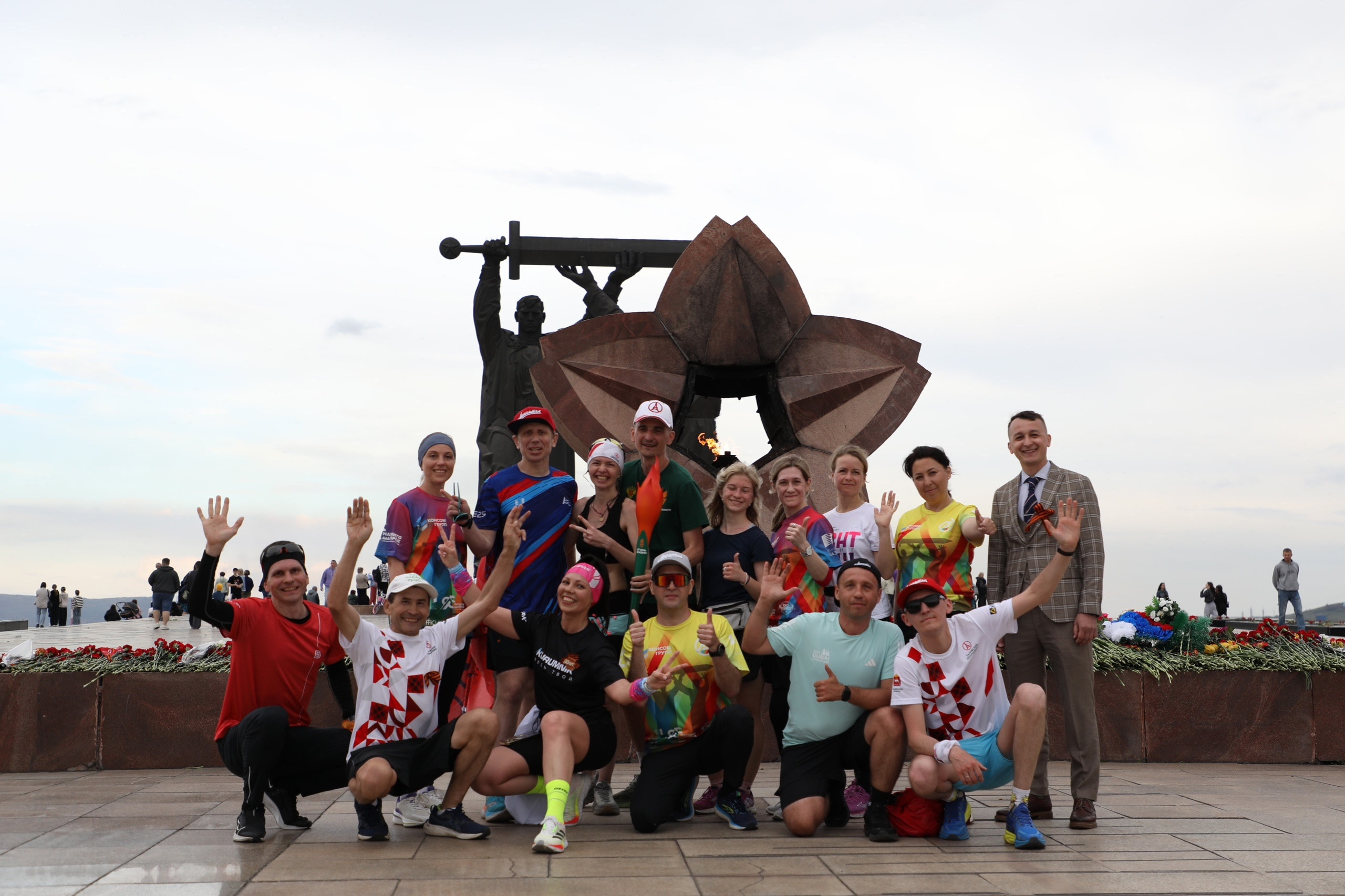 Москвичи и магнитогорцы пробежали 80 километров из села Париж до монумента «Тыл – фронту», чтобы возложить цветы к Вечному огню в память о подвиге поколения победителей.