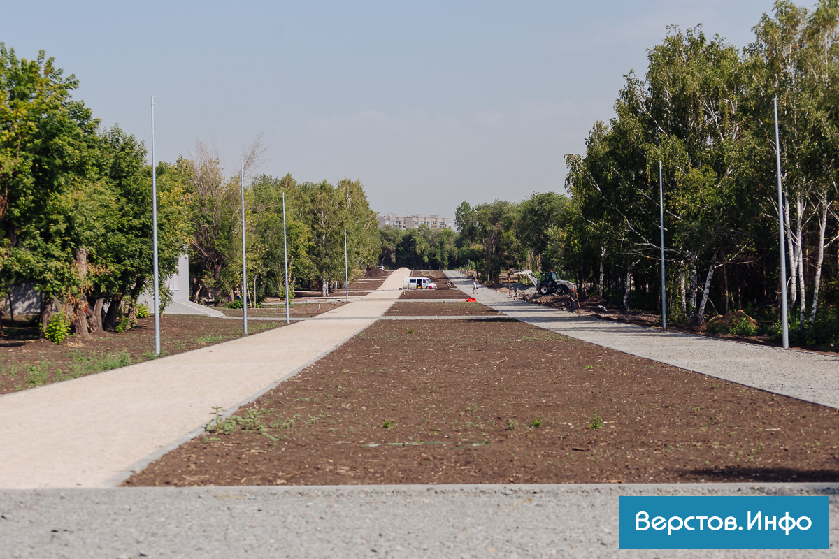 Из явных изменений – почти закончена работа на центральной аллее. Одна ее часть, как и предлагали подрядчики в прошлый визит, отсыпана песком и завершена. Другая отсыпана щебнем и ждет асфальтового покрытия.