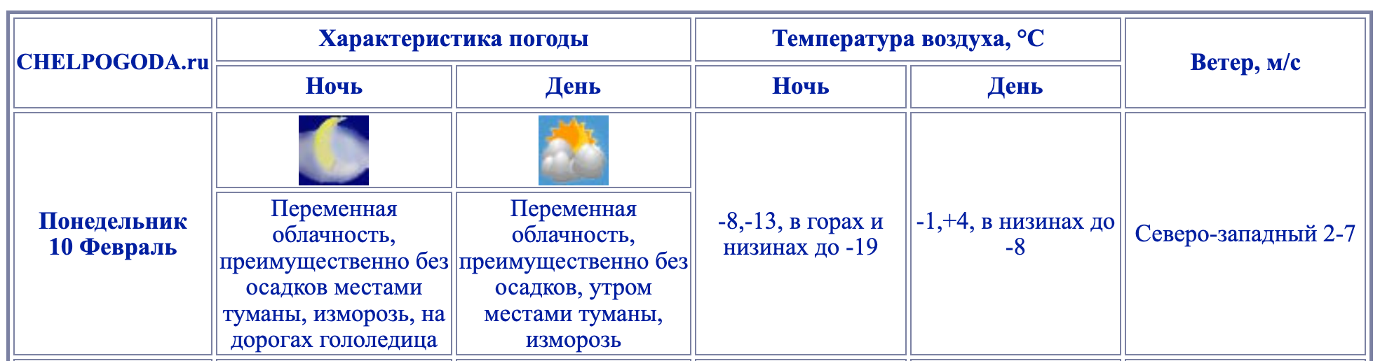 Завтра, 10 февраля, в Челябинской области ночью ожидается 8-13 градусов мороза, местами столбики термометров опустятся до отметки в -19 градусов. Днём же в некоторых муниципалитетах воздух прогреется до +4 градусов. При этом в низинах будет до -8 °C.