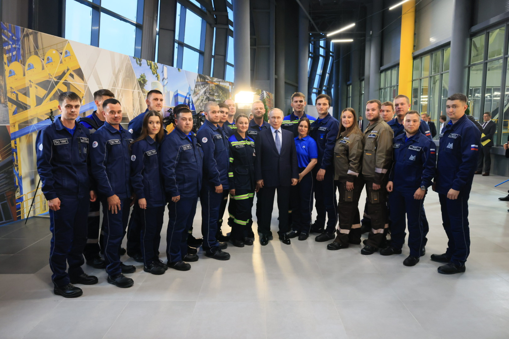 Во время посещения нового машиностроительного цеха МРК президент России пообщался с сотрудниками комбината, которых поздравил с грядущим праздником – Днём металлурга.