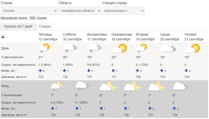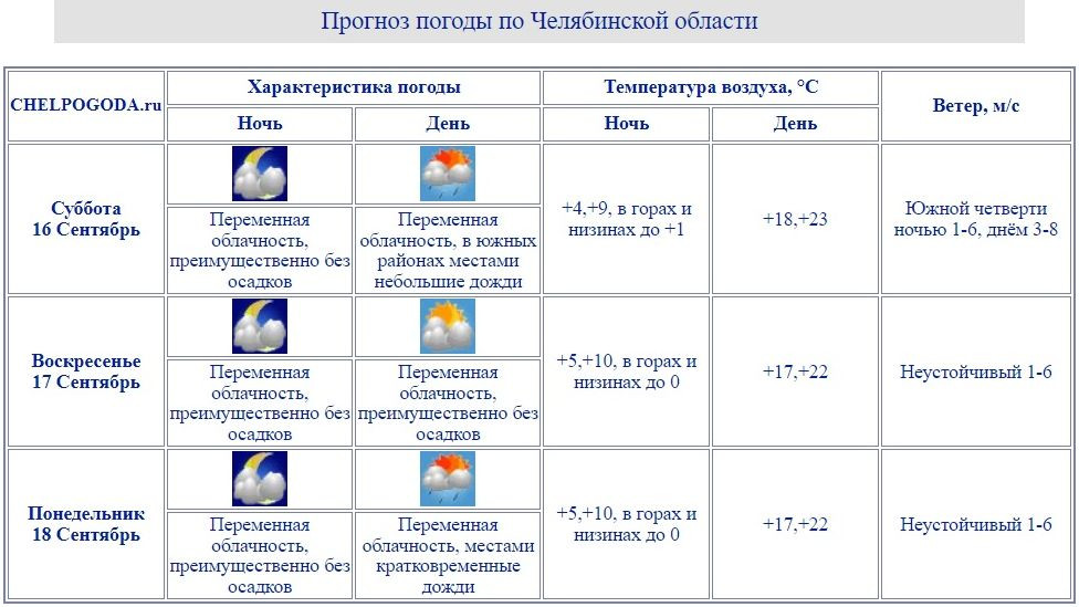 По данным Челябинского гидрометцентра, ближайшей ночью в регионе будет до +9 градусов. В субботу, 16 сентября, в дневные часы воздух прогреется до +23 градусов, так что можно сказать, что бабье лето в самом разгаре. Правда, в южных районах Челябинской области, в том числе и в Магнитогорске, возможны небольшие дожди.