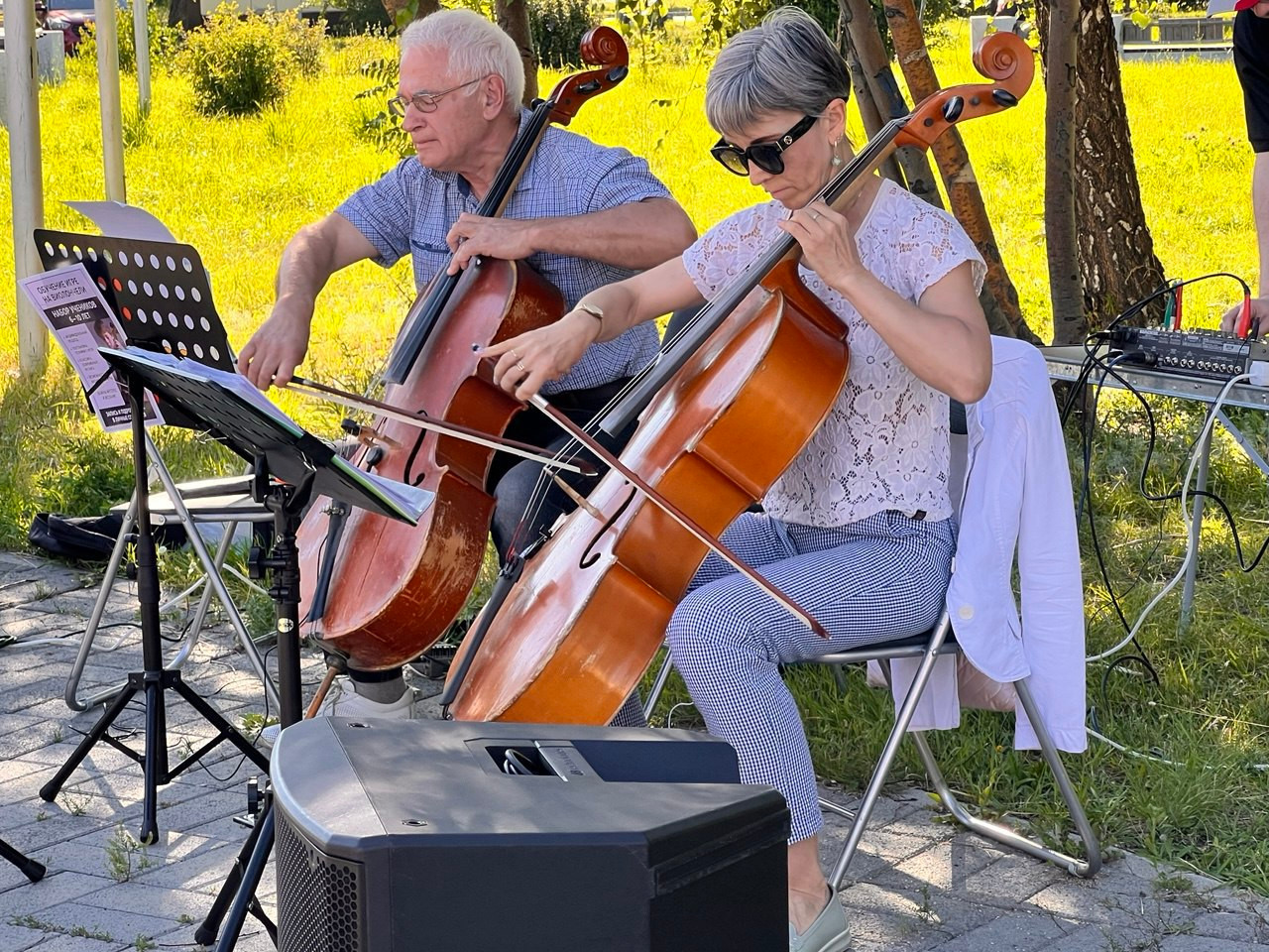 Для горожан выступили лауреаты всероссийских и международных конкурсов, преподаватели ДШИ «Камертон» виолончелисты Людмила Мартемьянова и Багиш Мовсесян.