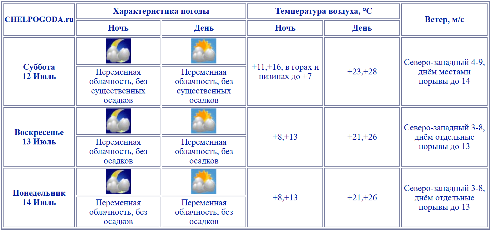 В предстоящие выходные дни на Южном Урале будет тепло, но без аномальной жары. Завтра, 12 июля, ночью ожидается 11-16 градусов тепла, местами до +7 °C. При этом днём будет от +23 до +28 градусов.