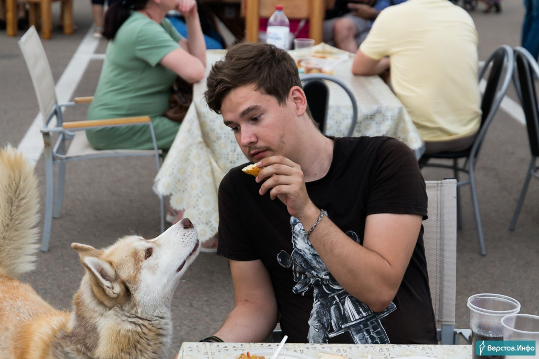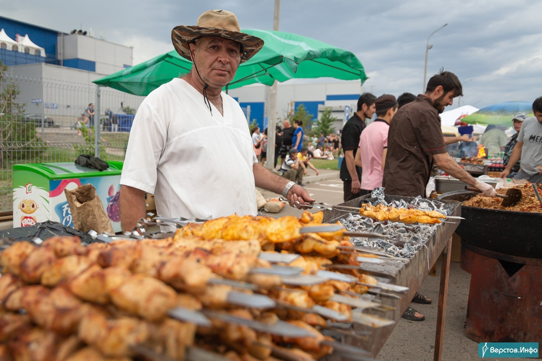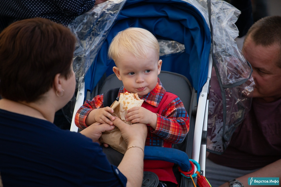 Ближе к шести часам вечера около арены уже вовсю шла торговля воздушными шарами и нехитрой праздничной атрибутикой. На парковке за ледовым дворцом открылись точки питания, дымили мангалы с шашлыками, продавцы завлекали горожан пирожками, освежающими напитками и прочей снедью.