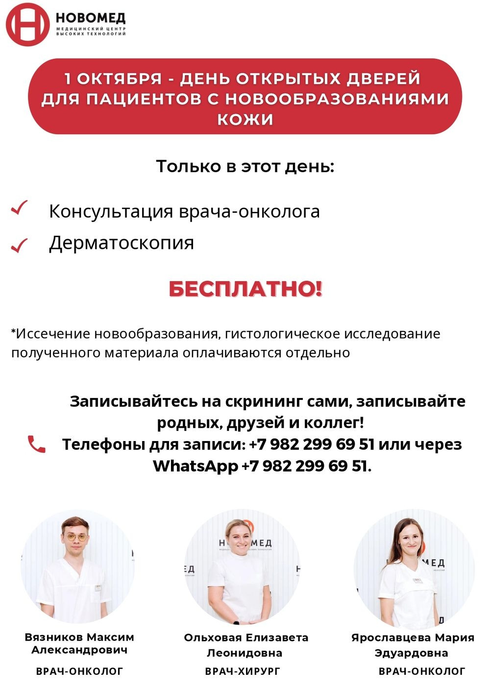 Уже сейчас можно записаться на участие в мероприятии, записывайтесь на скрининг сами, записывайте родных, друзей и коллег! Телефоны для записи: +7 982 299 69 51 или через WhatsApp +7 982 299 69 51.