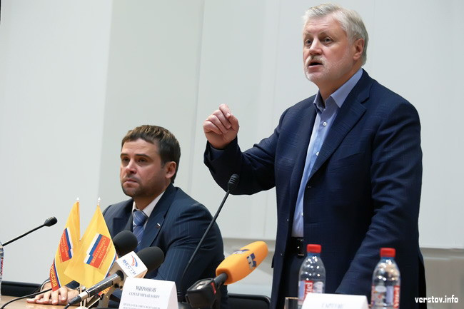 После долгого выступления Миронова слово взял Валерий Гартунг, затем Вячеслав Евстигнеев. Когда высказались партийные лидеры, говорить начали присутствующие. Точнее, задавать вопросы. Кто-то передавал записки, кто-то поднимал руки. Миронов подробно и обстоятельно отвечал на всё, не стесняясь критиковать «Единую Россию». Выслушал даже журналиста и руководителя шахматной федерации Александра Добчинского, рассказавшего о проблеме развития шахмат и улыбнулся, услышав о предложении для Путина и Медведева: «пусть проедут поездом всю Россию и посмотрят, кто как живет».