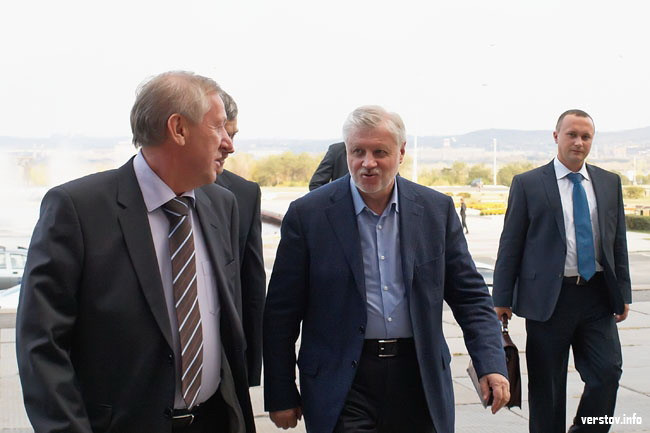 В 17:30 Сергея Миронова и сопровождающего его лидера регионального отделения партии Валерия Гартунга уже встречали в аэропорту. Главного справедливоросса страны приветствовал однопартиец, председатель местного отделения Вячеслав Евстигнеев, а также представители власти от правящей партии – градоначальник Магнитки Евгений Тефтелев и спикер горсобрания Александр Морозов.
