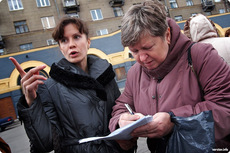 Пока Ольга Самосуева пыталась спокойно поговорить с активистами, от общего собрания откололась небольшая группа жителей. С ними проводил «профбеседу» молодой человек, который также представился сотрудником КПРУ. Он попенял собравшимся: мол, в городе засилье наркомании, люди умирают, что-то по этому поводу вы не бастуете.