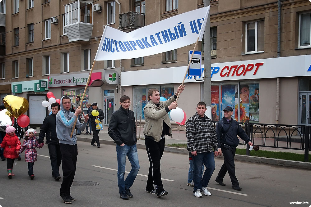 Ближе к дворцу пионеров разносился голос ведущего, похожий на голос Левитана: «Приветствуем колонну «ММК-Метиз!» Метизно-калибровочный завод был награжден орденом Трудового Красного Знамени!». Казалось, что организаторам хочется вернуть атмосферу тех светлых и добрых советских «маевок», и у них-то это, может, и получалось. А вот демонстрантам далеко не всем удавалось соответствовать историческому образу советского человека. Чего только стоит картина напротив площади народных гуляний, за забором, где заброшенный парк: в гуще травы, слава богу, спиной, стоят справляющие нужду российские трудящиеся.