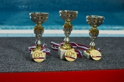 Все победители и призеры соревнований награждены медалями и грамотами. А победители в каждой возрастной группе еще и кубками аквапарка.