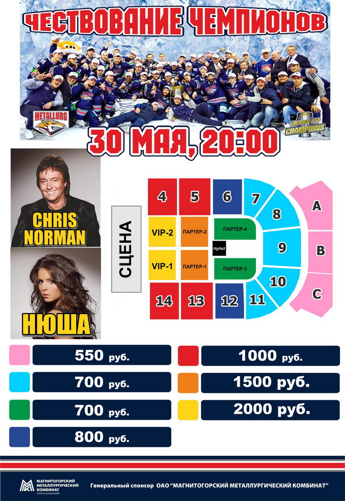 Вот это размах! Крис Норман и Нюша поздравят ХК «Металлург» с исторической победой