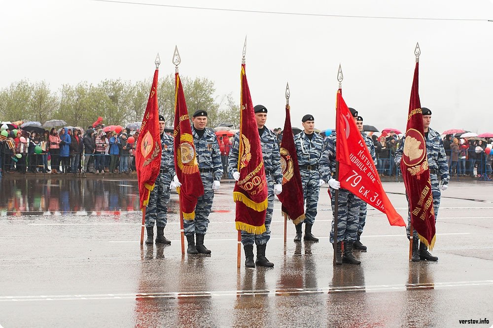 Добраться до парада вовремя успели не все. На подъездах к площади народных гуляний со всех сторон, практически не двигаясь, стояли в пробках автомобили, завидуя пешеходам, резво перескакивающим лужи в сторону эпицентра событий.