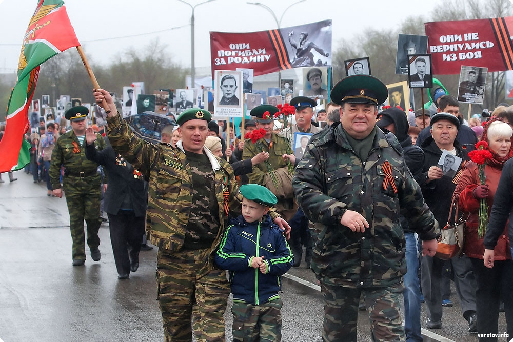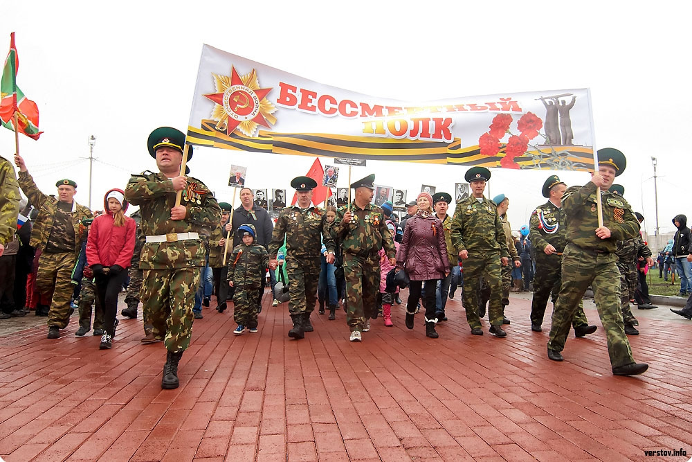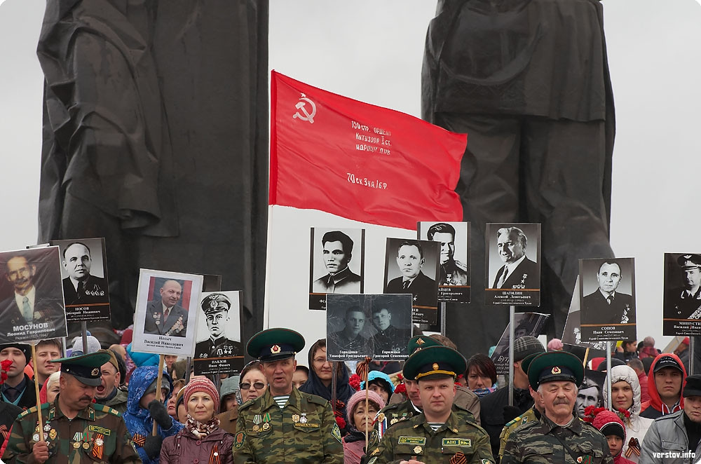 Магнитогорск. Скрываясь от непрекращающегося дождя под зонтами, тысячи магнитогорцев пришли отдать дань памяти погибшим в Великой Отечественной войне. Самым масштабным действом парада Победы стало шествие «Бессмертного полка», который собрал рекордное количество человек.