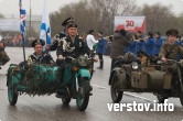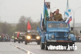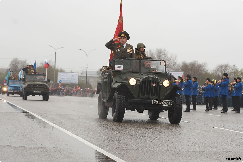 Хорошо было слышно ведущего и видно шествующих тем, кто пришел пораньше. Опоздавшим пришлось ютиться за спинами ранних пташек, подпрыгивая и вслушиваясь в отголоски. Как и всегда, первой на площадь вышла техника: руководимая мотоциклетной группой. К ГАЗам, принадлежащим ДОСААФ, присоединился голубой УАЗ со словом «Победа» вместо госномера. За ретро-«Волгами» ехала спецтехника ведомств и силовых структур. Выехав к «Бумерангу», ГАЗы остановились и собрали вокруг себя детей и взрослых, желающих сфотографироваться.