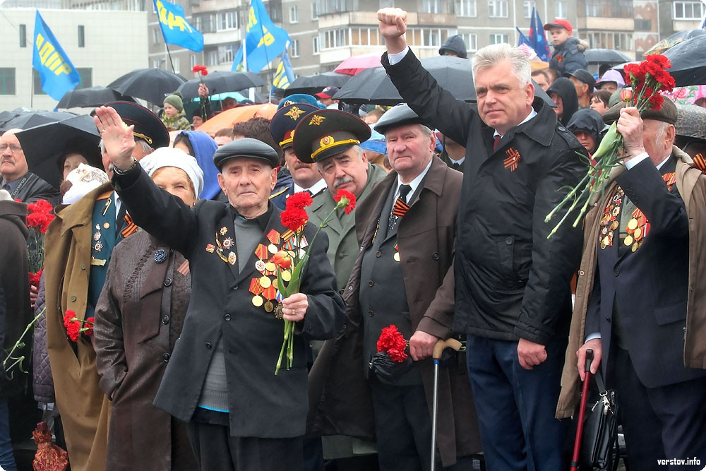 «18 тысяч магнитогорцев не вернулись с полей сражений. Но и здесь был фронт – в тылу, трудовой фронт. Наш народ сумел победить всю Европу, потому что вся Европа работала на Германию. Каждый второй снаряд и каждый третий танк был изготовлен из магнитогорской стали. У нас теперь есть общественное признание – город трудовой доблести и славы. Спасибо ветеранам за то, что вы сделали. Как бы не пытались переписать историю: это невозможно!».