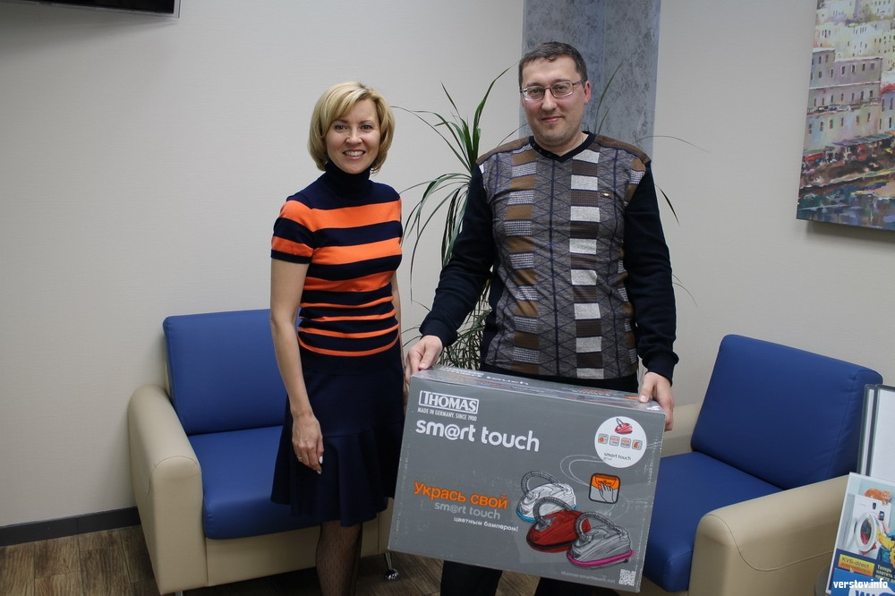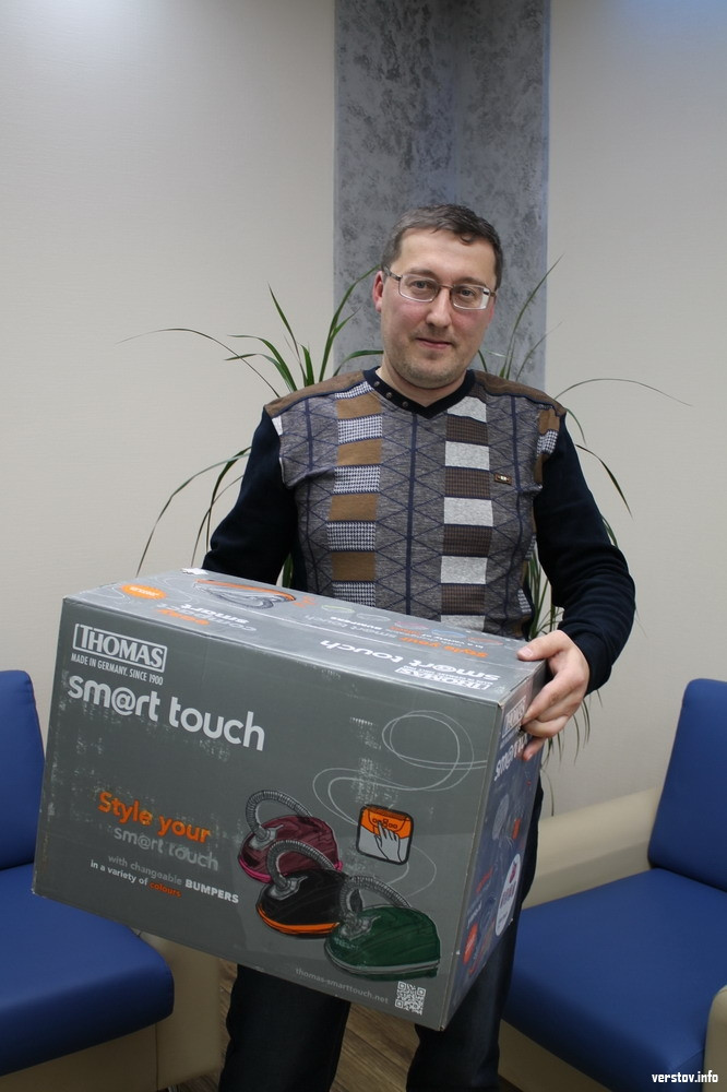 Очередным победителем стал Дмитрий Санников, сотрудник ОАО «ММК». Старший вице-президент «КУБ» ОАО Светлана Еремина в торжественной обстановке вручила Дмитрию Анатольевичу приз – пылесос, с пожеланием и дальше активно использовать возможности системы «КУБ-Direct» для решения повседневных задач.