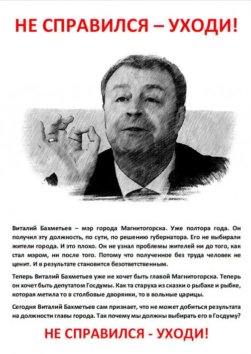 Предполагаем, что данная листовка будет сопровождать не справившегося с должностью градоначальника кандидата в Госдуму довольно долгое время…