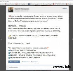 Спрос, видимо, был. Иначе бы продавцы не прожигали драгоценные часы на улице. Продавали наклейки, в среднем, по 150 рублей. Прикинуть, сколько они зарабатывали, нетрудно. За пять минут серфинга в интернете мы обнаружили паблик в социальной сети и несколько сайтов, которые предлагали накануне Дня Победы «выгодную франшизу». В нее входит комплект наклеек, бизнес-план и рекомендации по продажам и по увеличению прибыли.