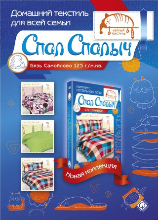 Наши магазины «Спал Спалыч» предлагают огромный ассортимент текстильной продукции: комплекты постельного белья от эконом до элит класса, широчайший выбор подушек и одеял, махровые полотенца, текстиль для кухни, детский и взрослый трикотаж, ткани.