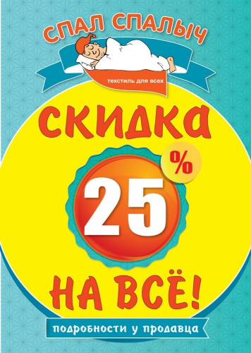 Сеть текстильных магазинов «Спал Спалыч» объявляет о всеми любимой и долгожданной акции «СКИДКА 25% НА ВСЕ!».