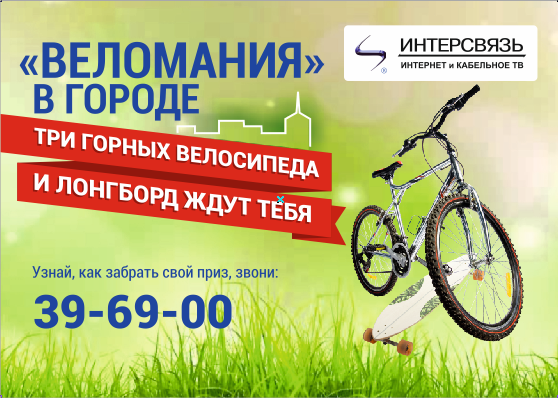 В середине мая лидер телекоммуникационного рынка Южного Урала компания «Интерсвязь» запустила в городе яркую акцию с говорящим названием «Веломания». Присоединиться к ней могут все желающие: и те, кто уже является абонентом оператора связи, и те, кто только планирует присоединиться к его масштабной сети.