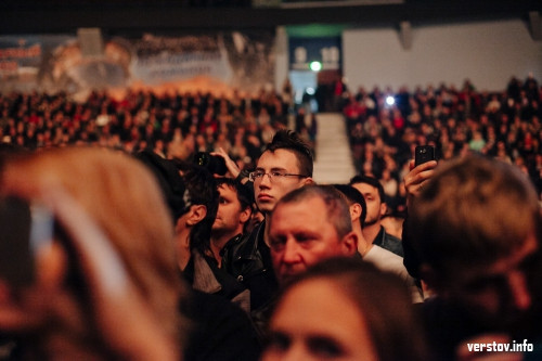 Концерт закончился около 10 часов вечера и еще почти час самые преданные поклонники ждали, когда Юрий Шевчук выйдет на раздачу автографов. Он вышел к 23:00, со всеми пообщался, пообнимался, подписал книги-фотографии-билеты — все, что принесли фанаты, а затем сделал со всеми общее фото на память.