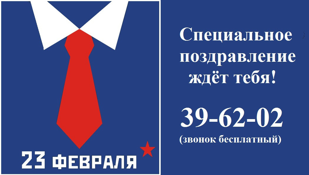 Чтобы услышать приятные слова в день праздника и поднять себе настроение, достаточно набрать номер 39-62-02. Любой представитель сильной половины человечества останется в восторге от такого сюрприза!