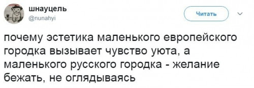 Проблемы в нашей стране будут всегда и во всем: в медицине, экономике, власти. Однако часть прогрессивного общества будет кивать на запад, томно вздыхая о красивых узких улочках, милых вывесках, аккуратных зданиях и улыбчивых аборигенах. А изменения будут восприниматься в штыки: «с коррупцией разберитесь, потом нагибайте малый бизнес».