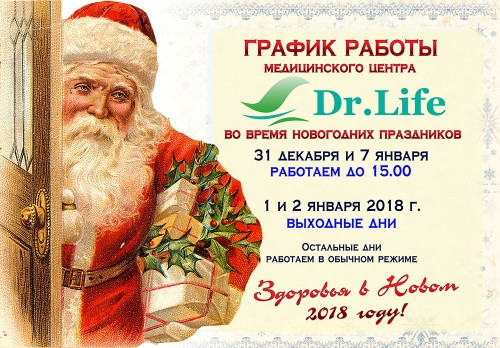 - 31 и 7 января медцентр «Dr.Life» работает до 15:00;