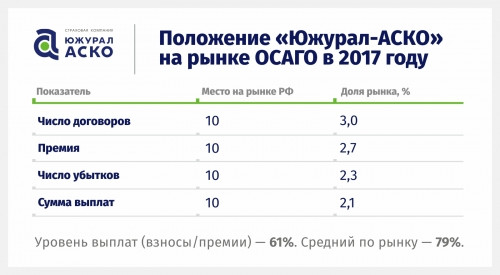 — Ответ на этот вопрос требует объяснений самого разного рода. Важный движущий фактор — это территориальное развитие. Я имею в виду не бездумное открытие офисов по сотням городов. Наше развитие — это очень аккуратная, грамотная экспансия. Прирост «Южурал-АСКО» дают новые рынки. Большой вклад в итоговый результат 2017 года обеспечила Свердловская область. Нам 28 лет, а мы вышли в Свердловскую область всего три года назад. По итогам 2016 года «Южурал-АСКО» — на 9-м месте по ОСАГО, по итогам первого полугодия 2017 года — на 4-м месте, а по итогам 2017 года — уже на 1-м месте. Причина прироста в применяемой нами бизнес-модели, контроле ситуации и анализе рентабельности.