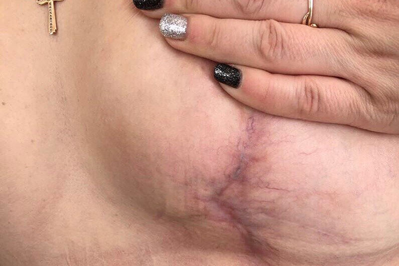 В итоге после «пластики» молочные железы остались разного размера, обезображенные страшными швами.