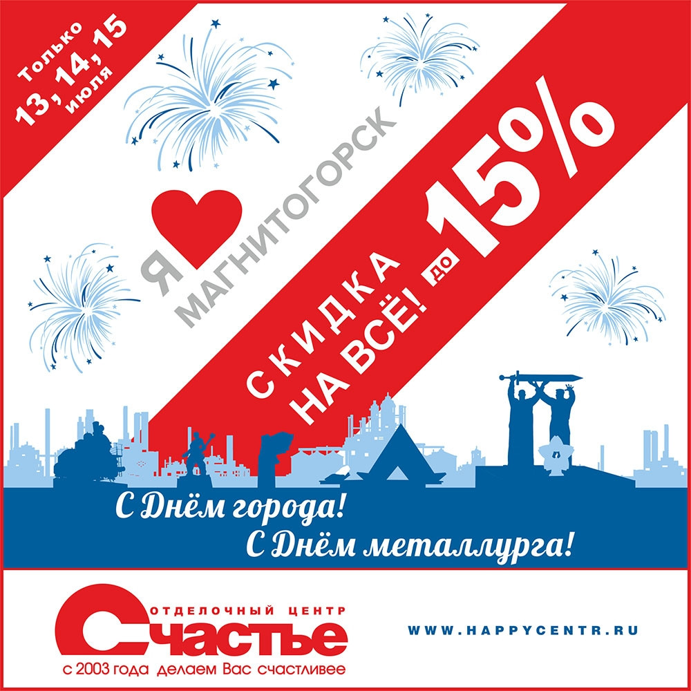 Магнитогорск. Отделочный центр «Счастье» от лица всего коллектива поздравляет жителей и гостей Магнитогорска с Днем города и с Днем металлурга!