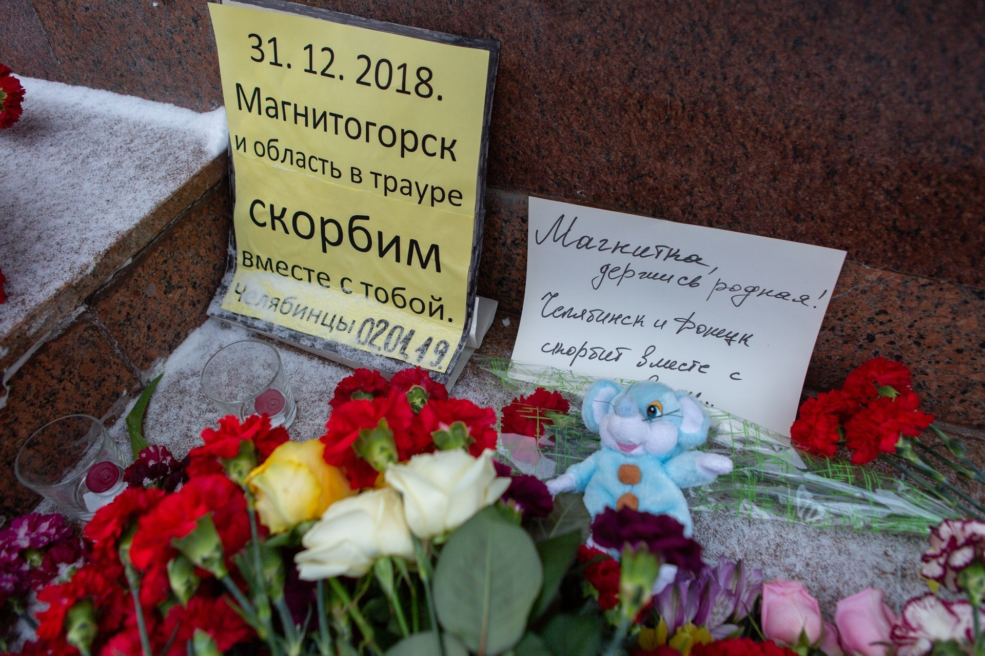Жители Уфы также не остались в стороне и почтили память погибших магнитогорцев возле памятника Салавату Юлаеву, где уфимцы создали траурный мемориал: кто-то приносил игрушки, а кто-то цветы…