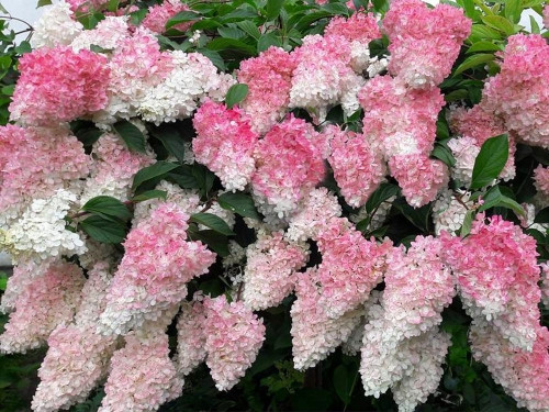 Метельчатая гортензия завоевала уральские сады быстро и бесповоротно, ведь от такой буйной и продолжительной красоты невозможно отказаться, хоть раз увидев ее в живую. Сорт «Ванилла Фрайз» – с уникальной необыкновенной окраской цветов, которая может быть на одном кусте как белой, так и ярко-красной одновременно. Примечательно, что в начале цветения гортензия усыпана белыми цветами. Чуть погодя по краю лепестков можно наблюдать розовую кайму.