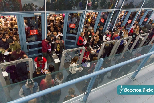 Правда, далеко не все поклонники творчества Сергея Шнурова и компании заблаговременно начали приходить в Арену «Металлург». Именно поэтому у главного входа выстроилась огромная очередь. Начало концерта было запланировано на 19:00, но уже в половине седьмого стало понятно, что раньше восьми вечера шоу «Ленинграда» не начнется.
