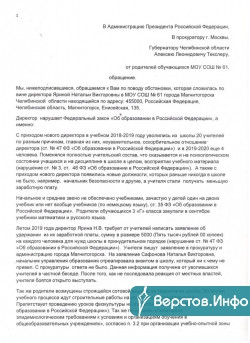 Пожаловались Текслеру и Путину. Более 100 родителей учащихся выступили против директора магнитогорской школы
