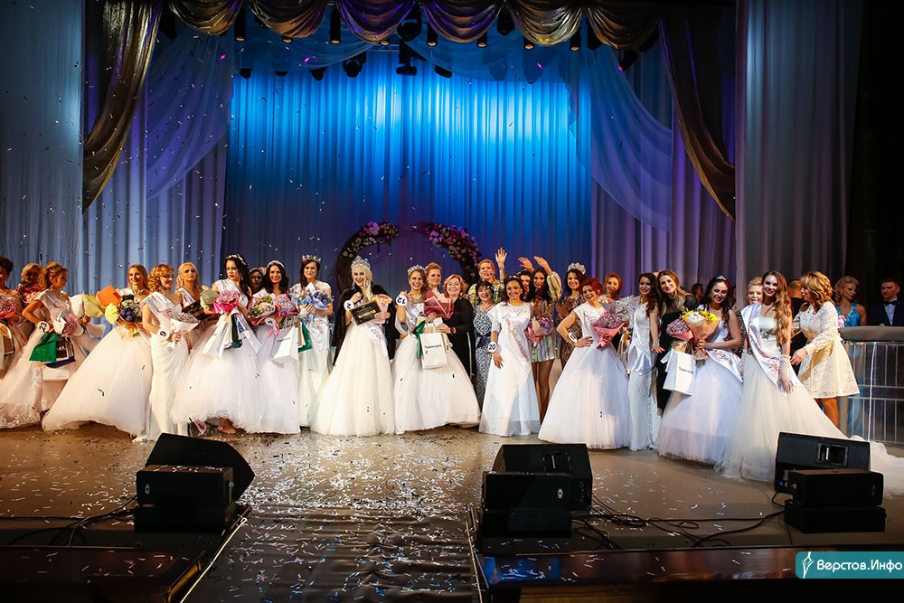 По традиции, перед оглашением имен победительниц девушки переоделись в свадебные платья и прошлись по сцене в сопровождении мужей и детей.