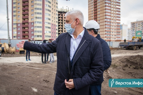 «Я удовлетворён состоянием дел». Бердников побывал на строительстве самой большой школы в Магнитогорске
