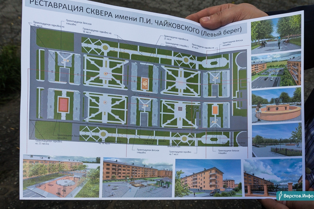 Магнитогорск. Сегодня, 24 августа, начальник городского управления архитектуры Владимир Астраханцев и глава Орджоникидзевского района Владимир Ушаков представили журналистам дизайн-проекты реконструкции сквера имени П. И. Чайковского и парка «Южный».