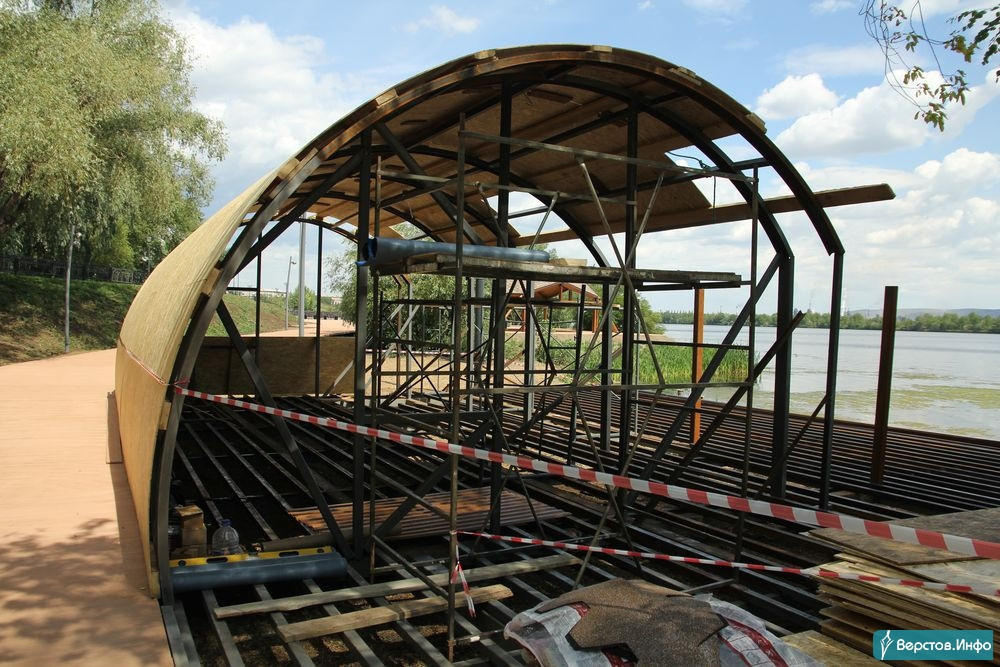 Подрядчики уже вовсю занимаются монтажом террасной доски, лавочек, освещения. Алексей Текслер и Сергей Бердников решили узнать у прогуливающихся горожан, как они относятся к изменениям в парке. Они пообщались с Ниной Яковлевной Анцис, которая отдыхала в парке и читала газету.