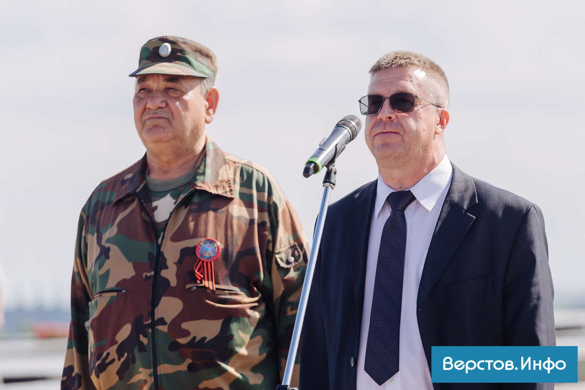Торжественный митинг начался с гимна России. На каждое официальное поздравление десантники отвечали бодрым троекратным «Ура!». «Ура» кричали за погоду, за синеву, за братьев с ленточкой, за генерала Маргелова, за ММК.