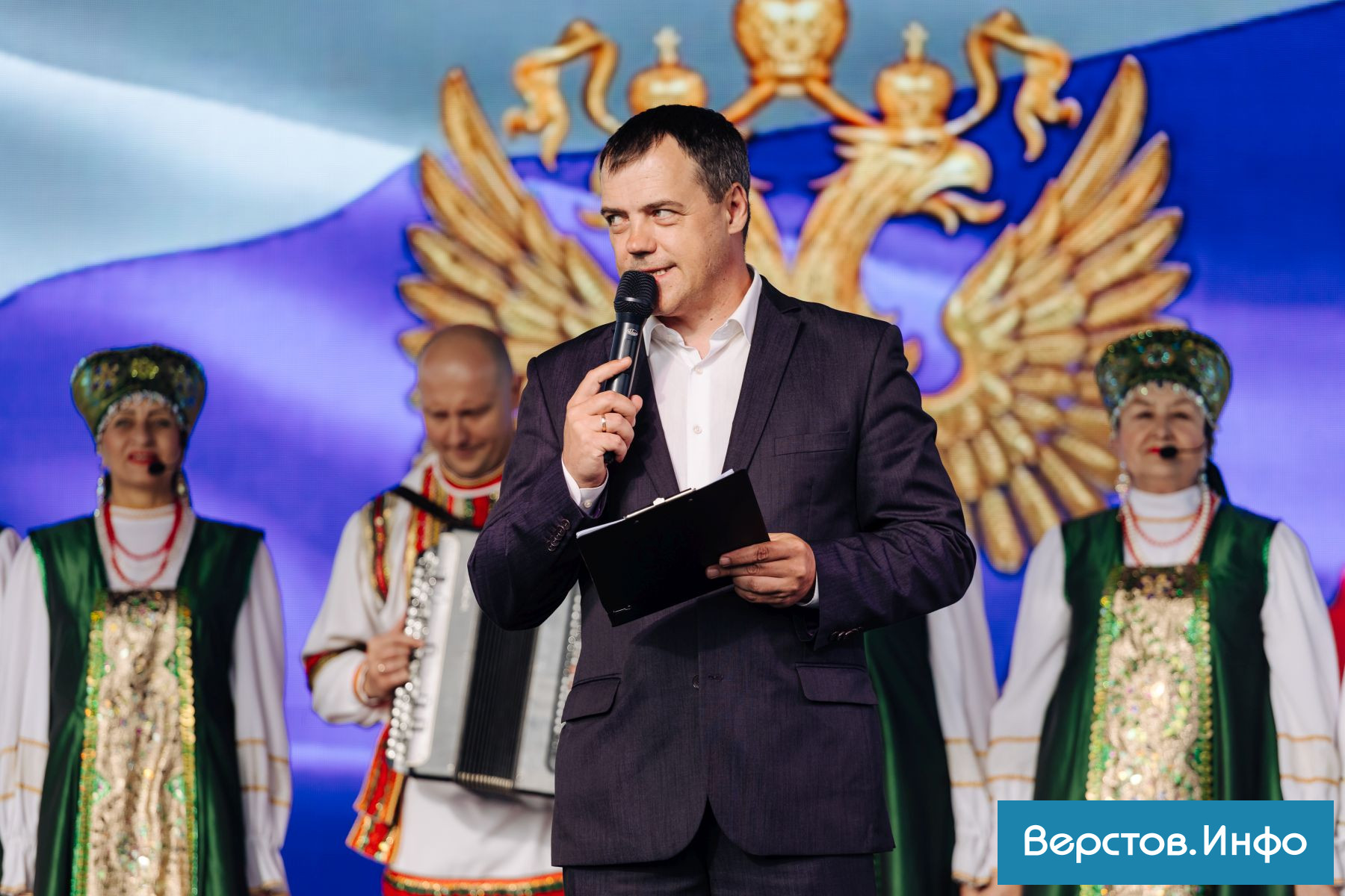 «12 июня – день, когда мы с уважением вспоминаем многовековую историю России и с верой смотрим в её будущее. Россия – это все мы, это огромная и многонациональная страна, где соседствуют культуры и традиции, где в каждом регионе своя душа, но одно большое сердце. Именно искусство, музыка, творчество помогают нам чувствовать это единство», – начал мероприятие ведущий.